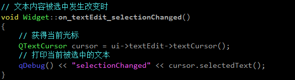 void selectionChanged() 当选中的⽂本改变时,发出此信号。