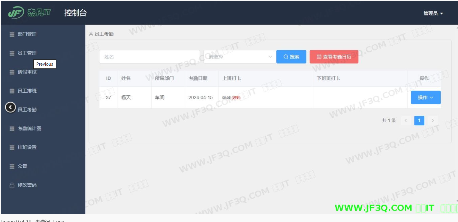 - 考勤监控:实时查看员工打卡状态,监控考勤异常情况,支持考勤数据的汇总统计。