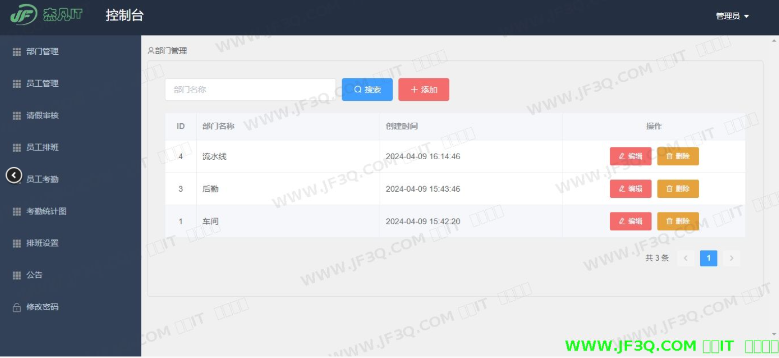 - 部门管理:管理企业内部部门信息,支持部门的增删改查。