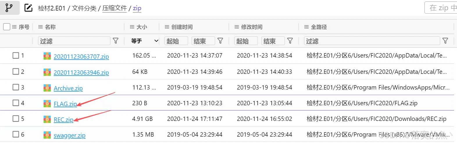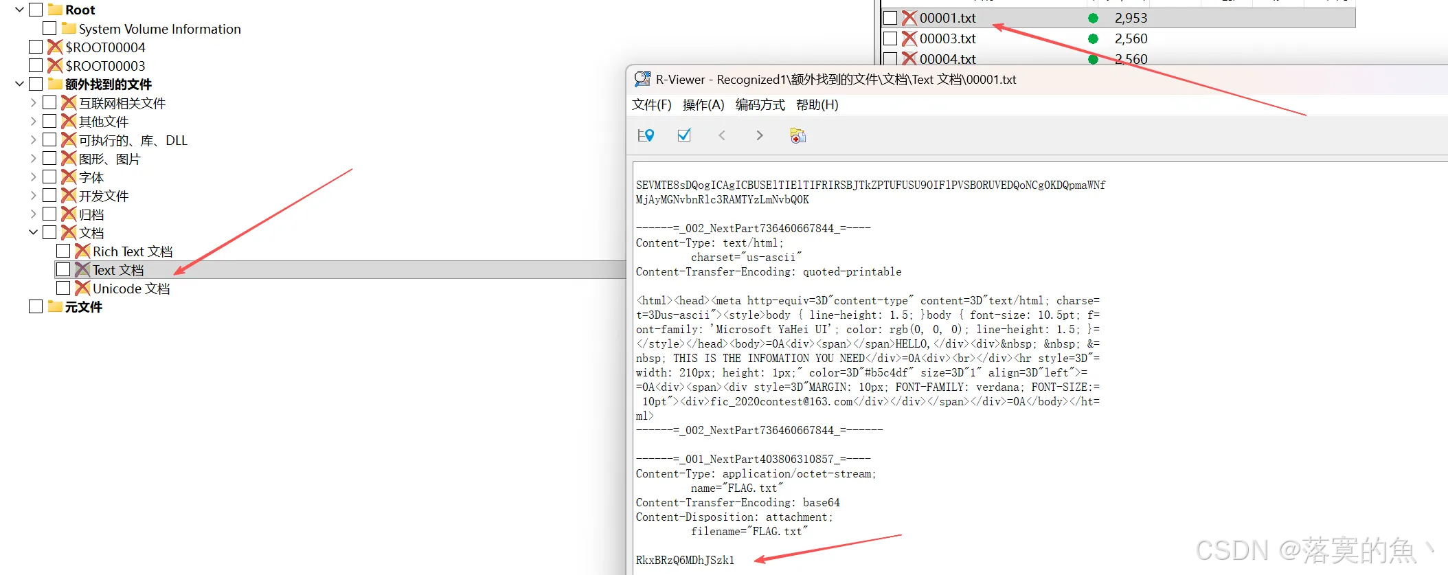 压缩文件/导出 REC.zip 发现是一个镜像 R-STUD 扫描磁盘发现 被删除的内容,Text 文档下有个 00001.txt ,发现有串 base64 编码 解密即可。得到 flag4