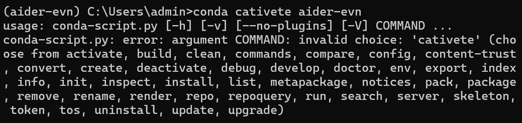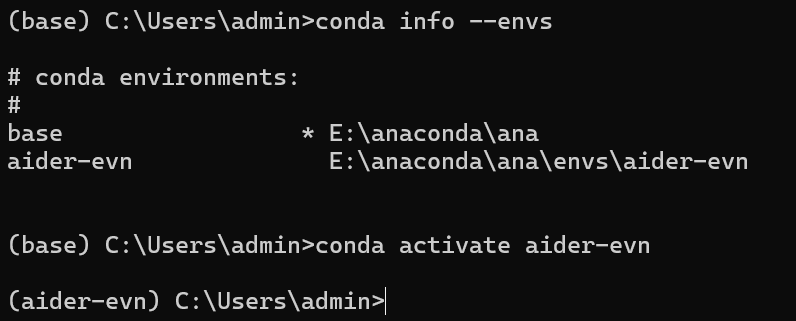 在anaconda prompt中激活并使用aider