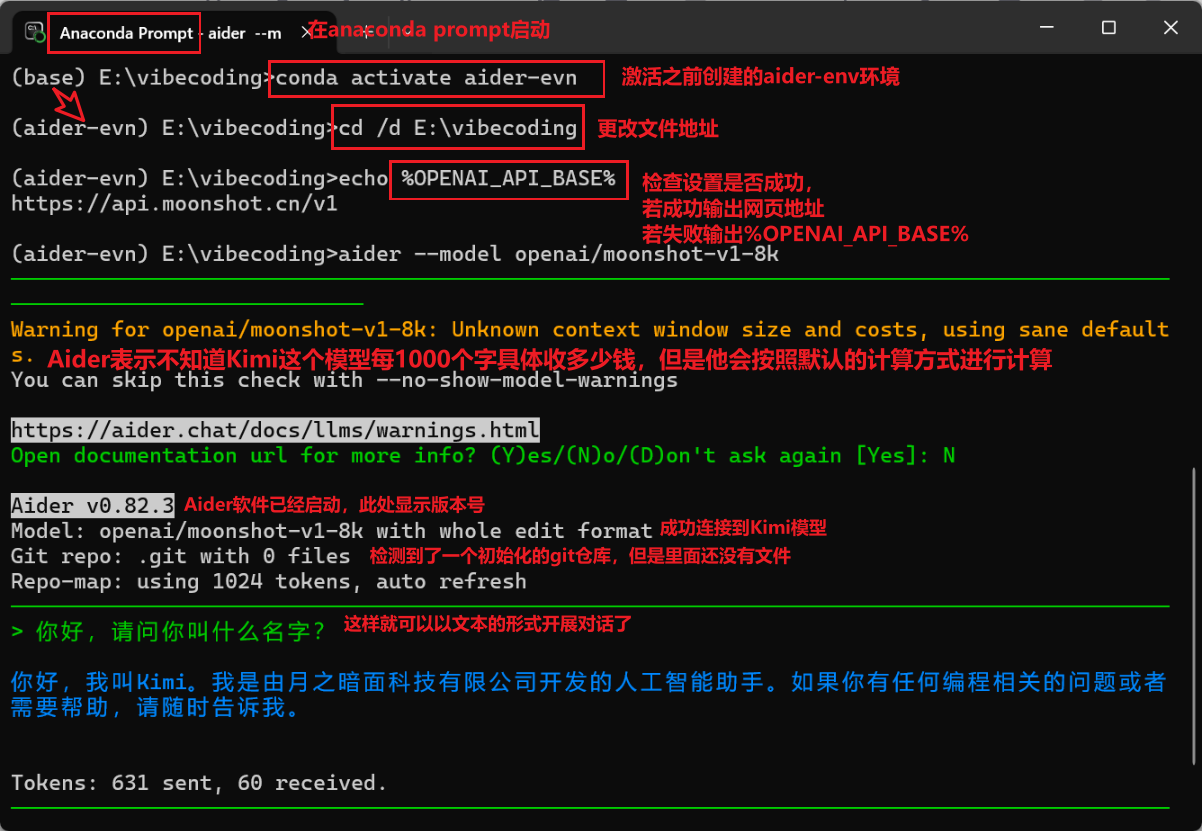 anaconda环境部署+AiderCLI搭建+KimiAPI接入,为后续做一个小型的AI产品做相关铺垫
