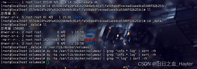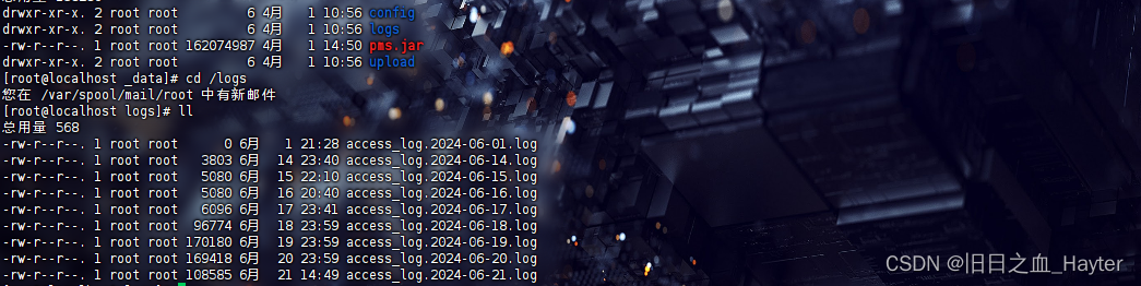 其中pms.jar是容器里的jar包,那么logs应该就是日志文件了,进去看下