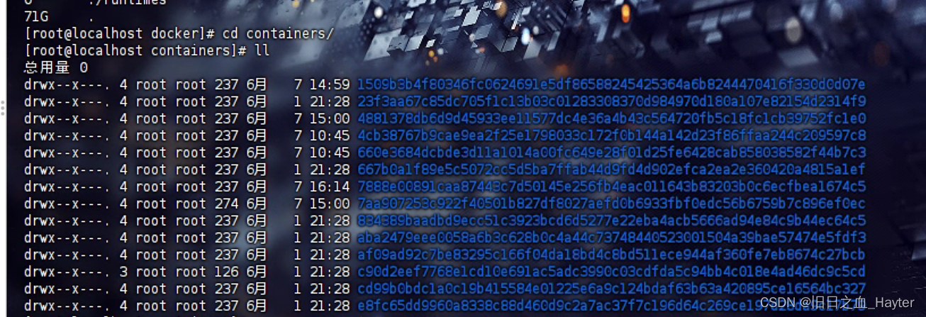 可以看到 containers 中占磁盘空间最大,这是 docker 存储镜像的目录,进去看看里面有什么