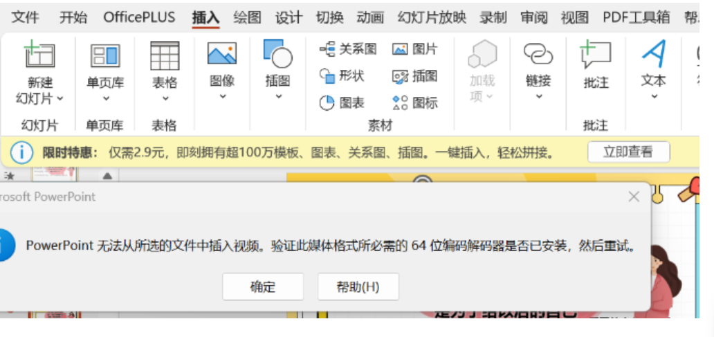 PowerPoint无法从所选的文件中插入视频,验证此媒体格式所必需的64位编码解码器是否已安装,然后重试