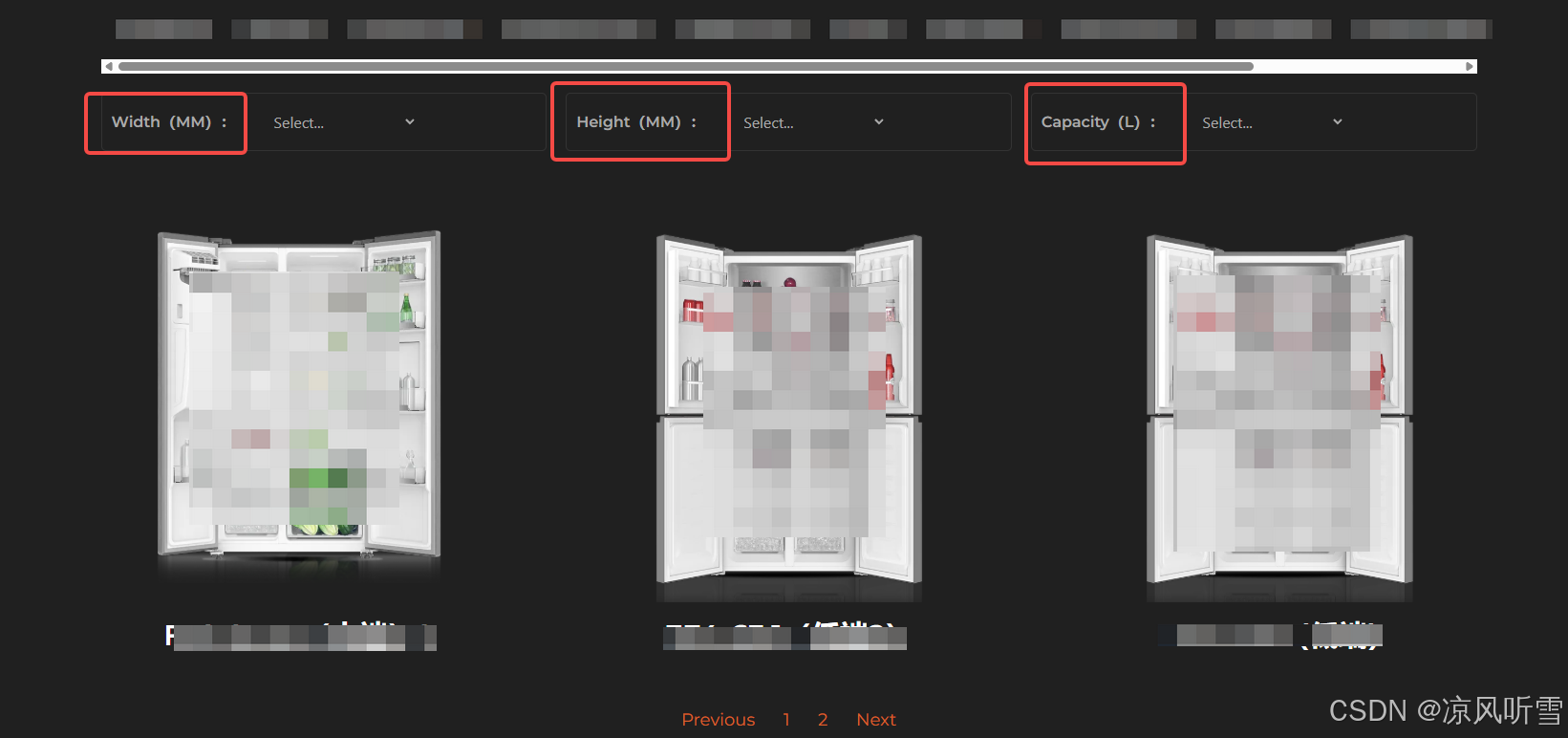 可以看到配置完成后选择对应参数进行筛选,下面会显示符合筛选条件的产品列表。