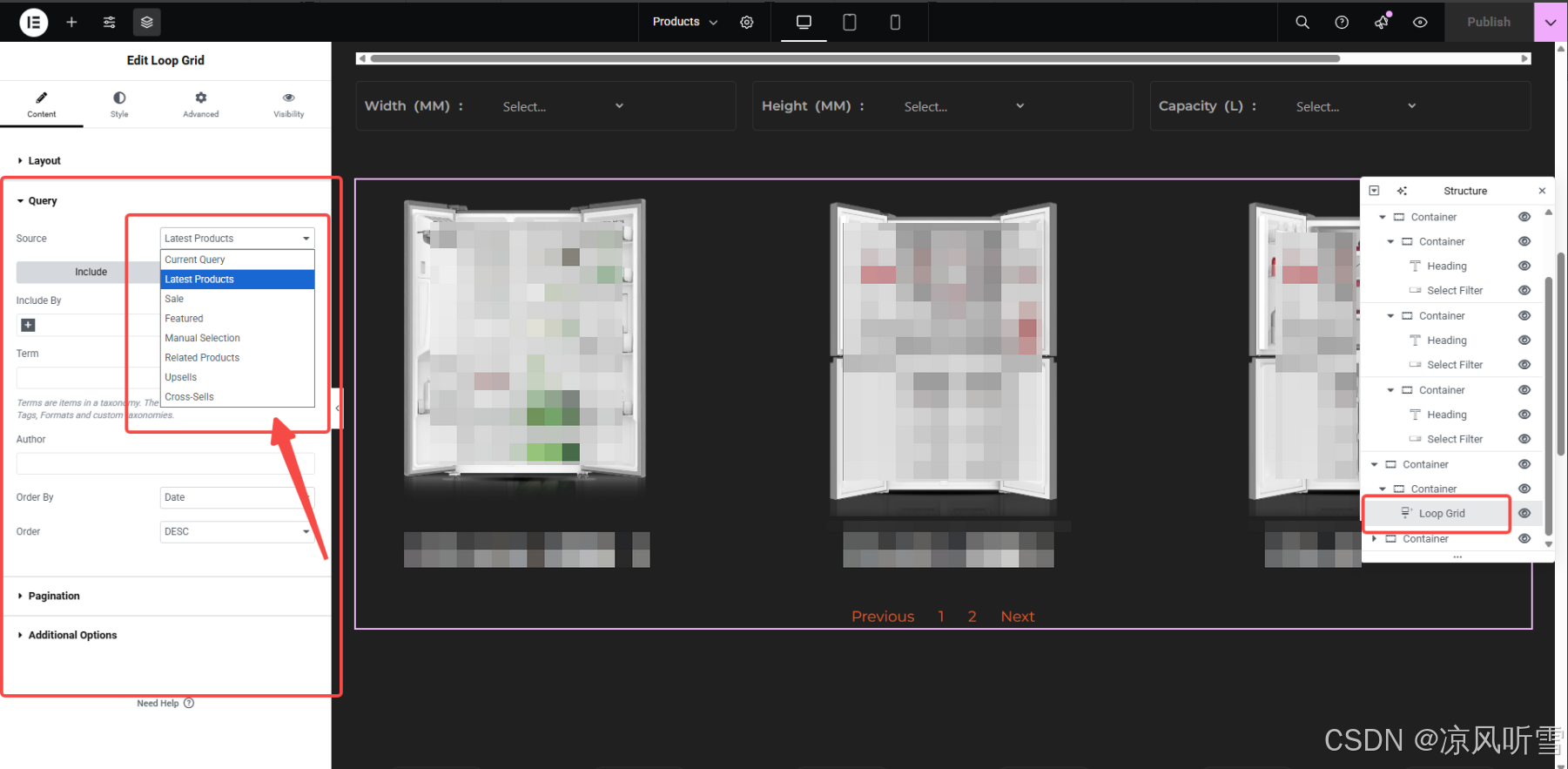 此处需要注意的是,如果是在product聚合页使用该方案,此处要选择Laster Products或其他非Current Query的选项,因为聚合页的参数获取是null的,会无法显示产品列表。