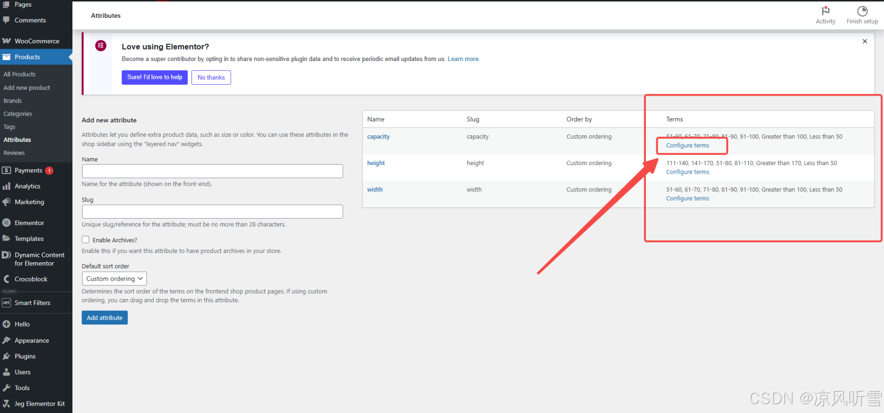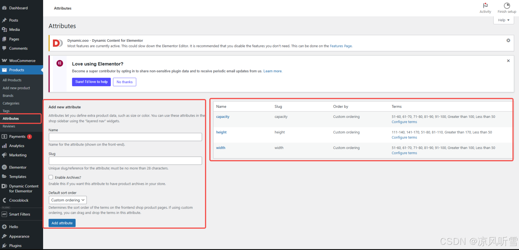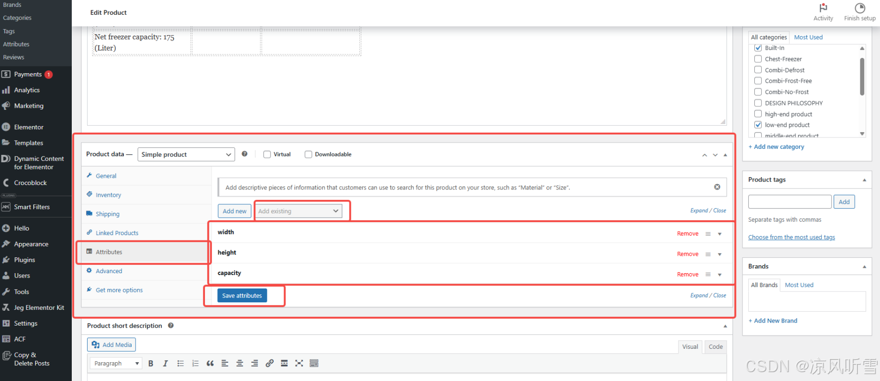 1、在后台产品子菜单点击attributes , 新增产品属性(就是进行筛选的选项)