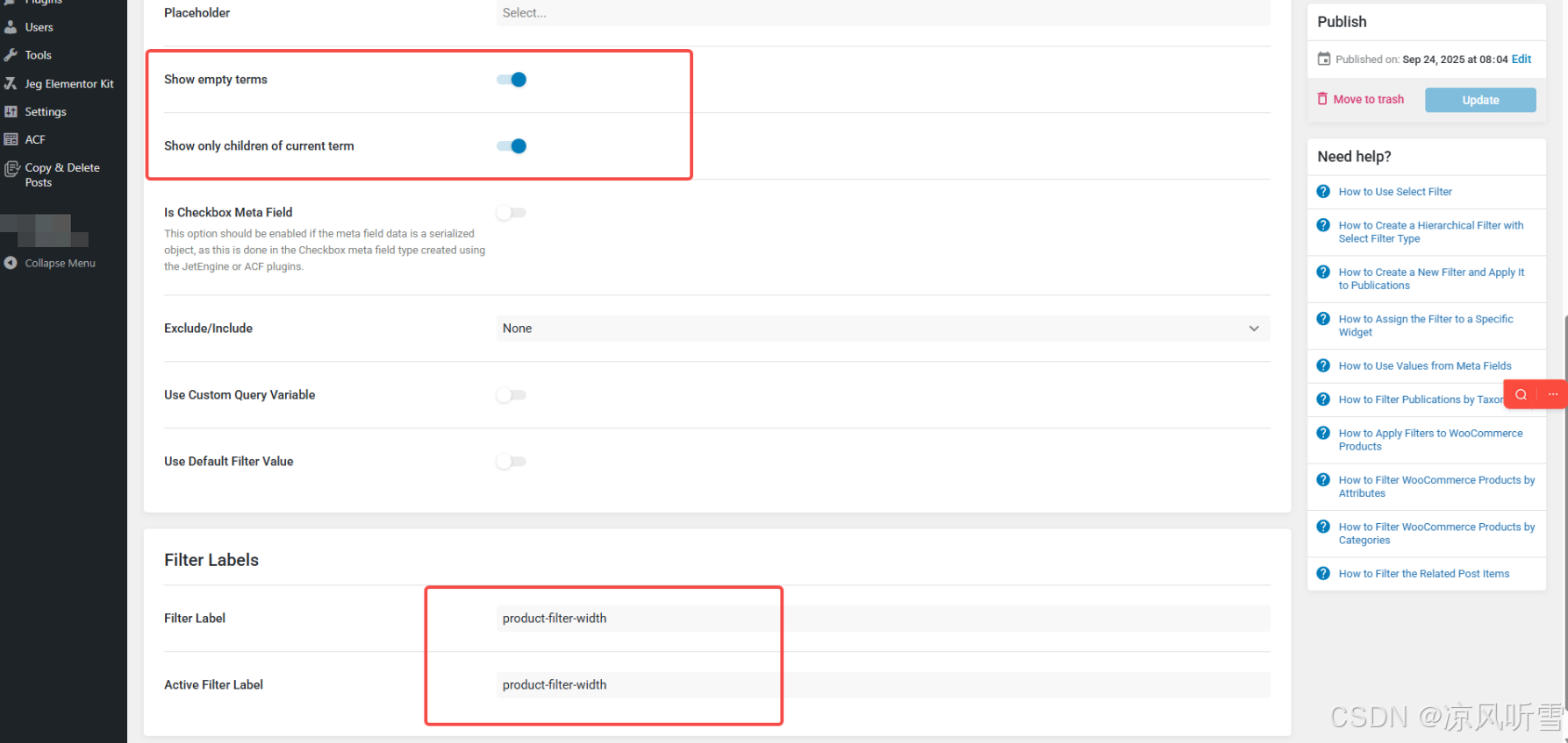 3、 给新建filter项填写对应 N ame, T ype ,D ata source, T axonomy,打开对应功能选项,填写label参数,填完后点击右上角update发布。
