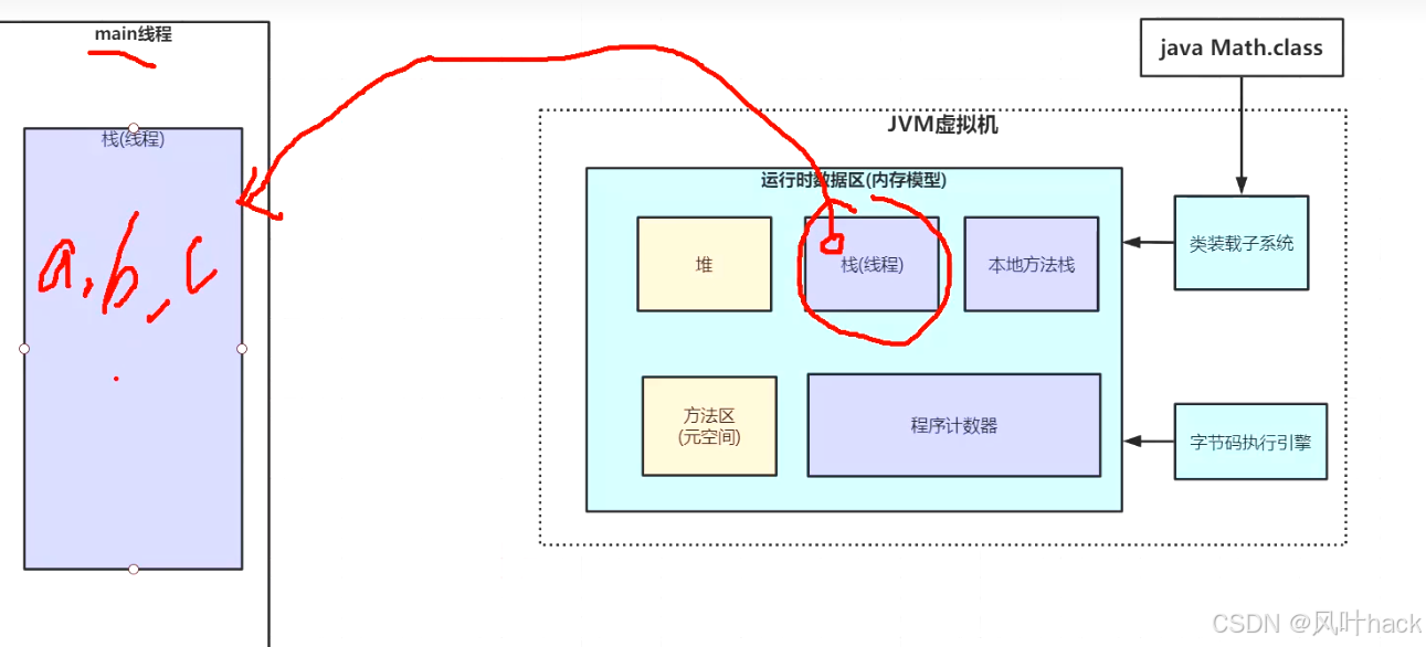 - 每个线程对应一个栈,存储方法调用的局部变量、方法出口等,通过