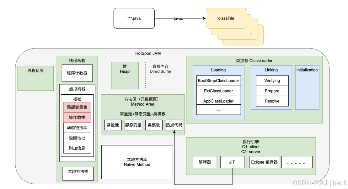这是JVM在运行时划分的内存区域,包含4个核心部分: