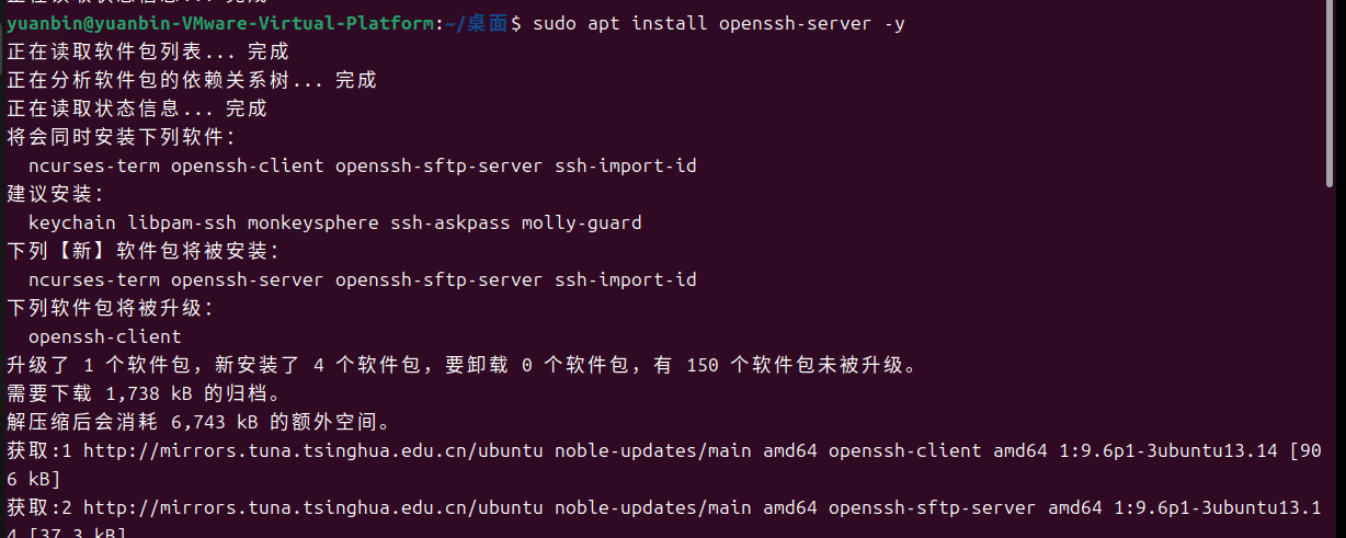 sudo apt install openssh-server -y //安装 OpenSSH 服务端程序(-y 表示自动确认安装)