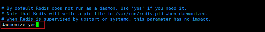 修改daemonize参数,yes为打开,开启守护进程,后台运行