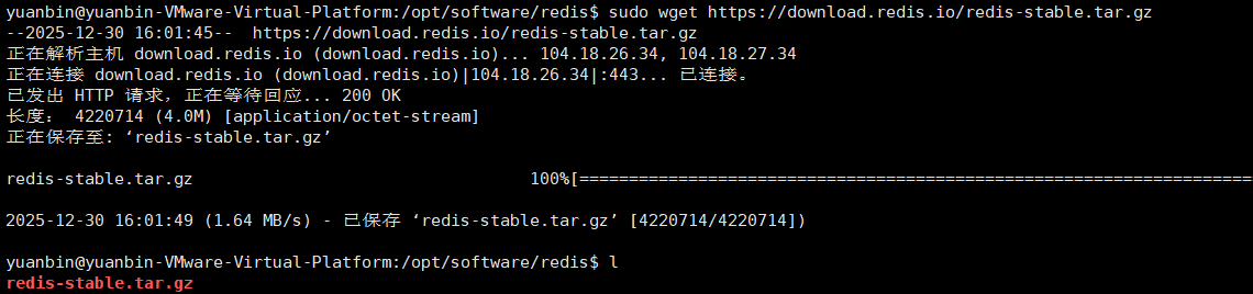 (3)下载redis压缩包,指令如下: