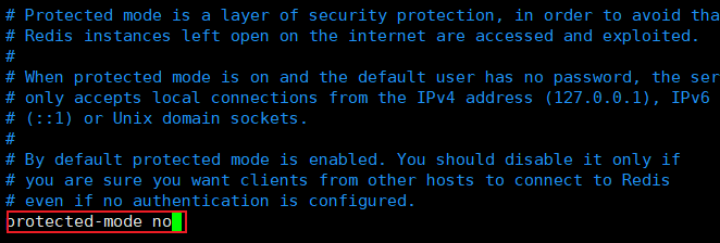 因为没有修改requirepass参数设置密码,所以修改protected-mode参数允许远程连接