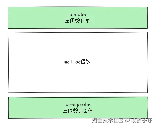 第一个问题来了:执行malloc函数的时候,是怎么执行到uprobe的?同样的,malloc函数结束的时候,是怎么执行到uretprobe的?