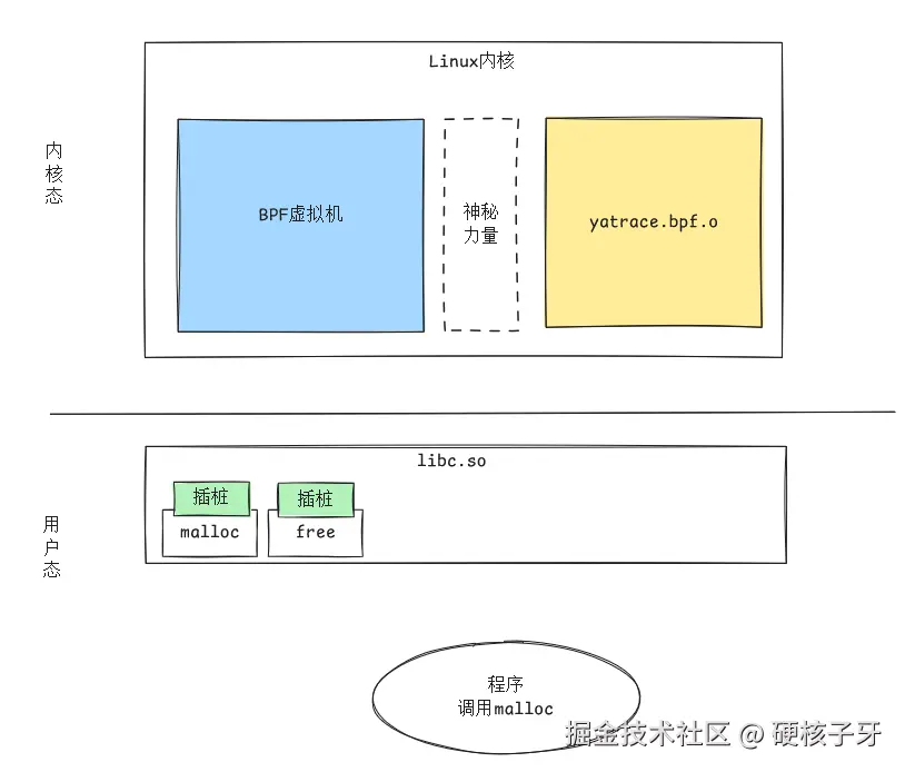 ebpf的代码是在Linux内核中的BPF虚拟机中运行的,第二个问题来了:uprobe malloc与uretprobe malloc是如何与Linux内核中的ebpf程序关联上的?