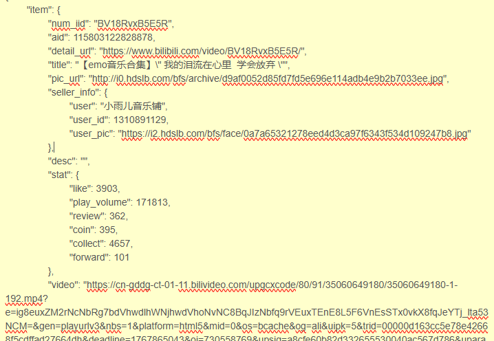 其他信息:desc(视频简介)、pubdate(发布时间戳)、pages(分P列表)。