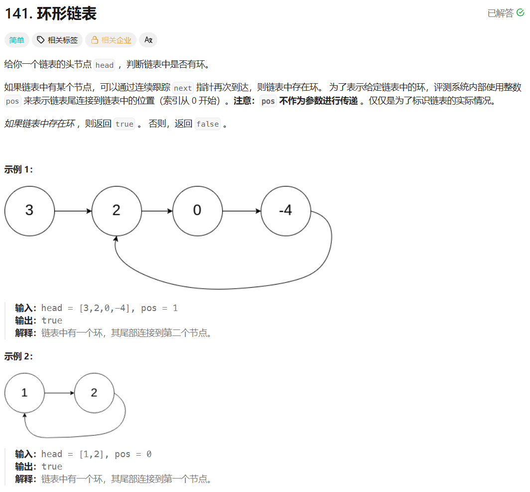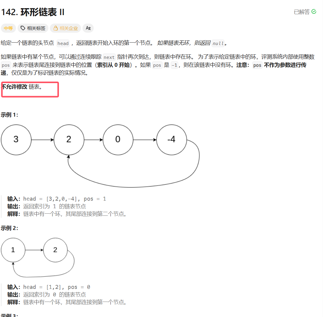 环形链表Ⅱ:注意不允许修改链表,因此可以声明一个结点: