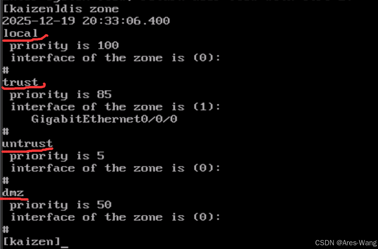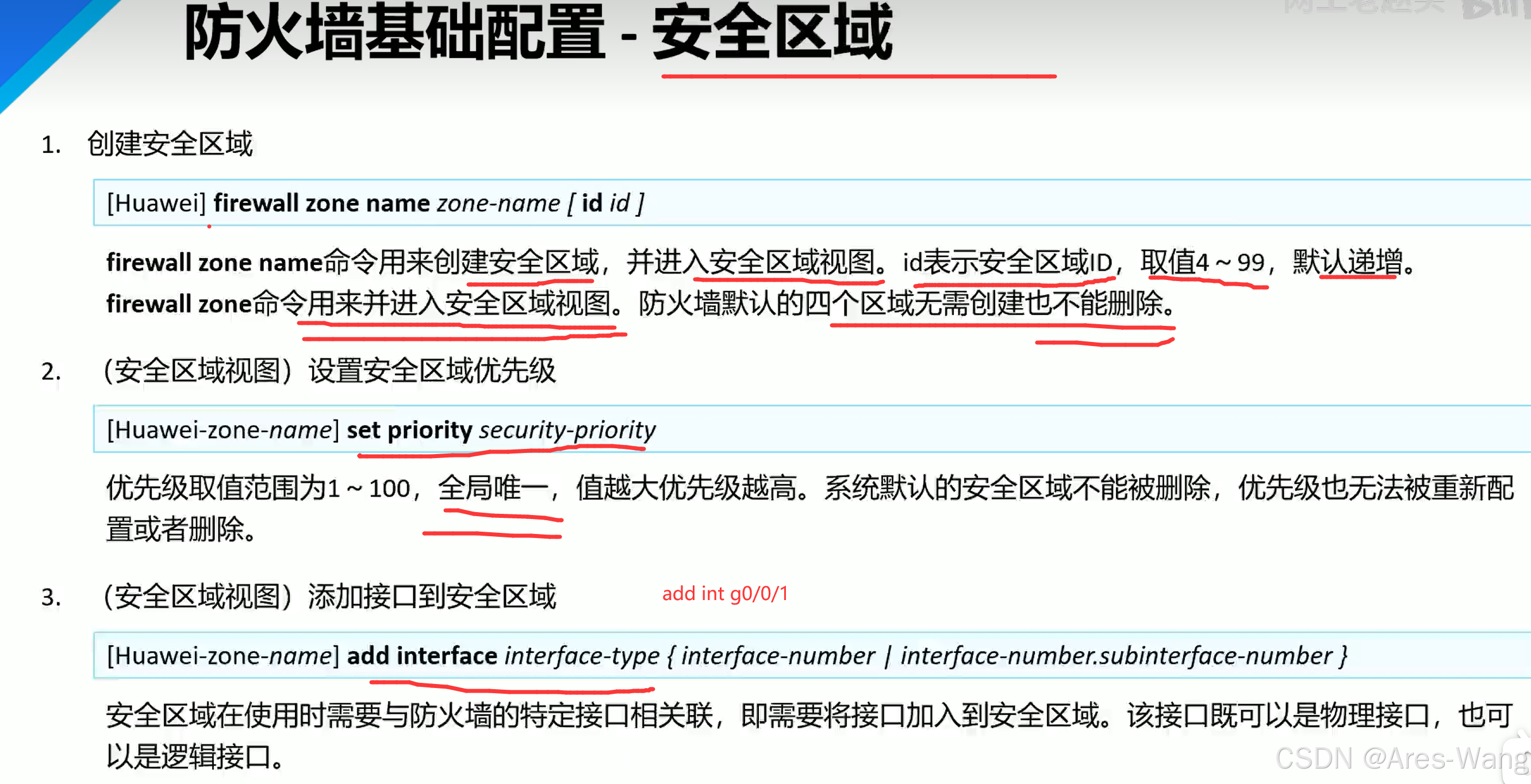 # 创建安全区域(预定义区域如trust、untrust、dmz通常已存在)