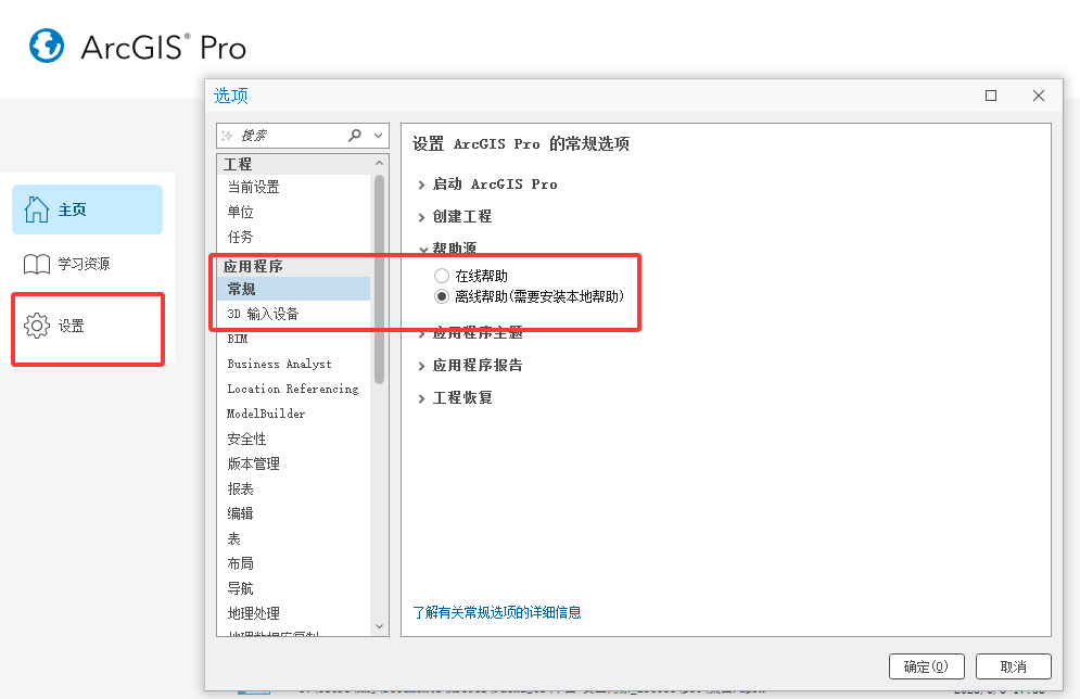安装完成后,在ArcGIS Pro配置一下帮助为离线帮助源