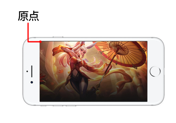 横屏(一般是玩游戏的握持方向),"原点"在屏幕的左上角