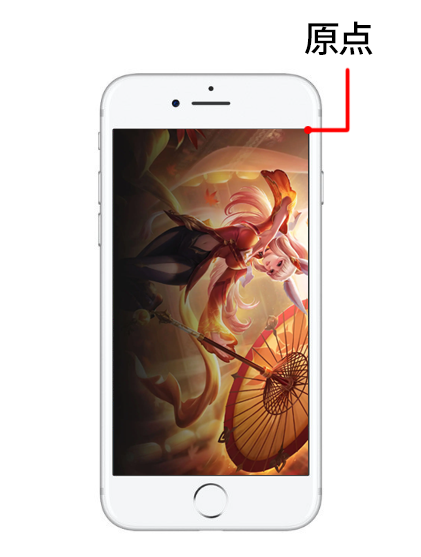 竖屏(日常使用手机的握持方向),"原点"在屏幕的左上角