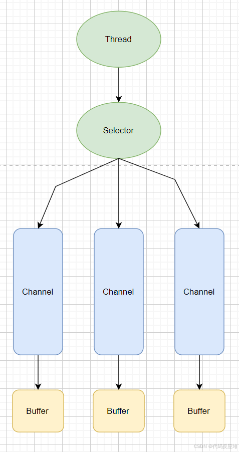 Selector 对应一个线程,一个线程对应多个 Channel(连接),每个 Channel 都会对应一个 Buffer,程序切换到哪个 Channel 是由事件决定的,Event 就是一个重要的概念,Selector 会根据不同的事件,在各个通道上切换。Buffer 就是一个内存块,底层是有一个数组,数据的读取写入是通过 Buffer,这个和 BIO是不同的,BIO 中要么是输入流,或者是输出流,不能双向,但是 NIO 的 Buffer 是可以读也可以写,需要 flip 方法切换 Channel 是双向的。