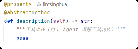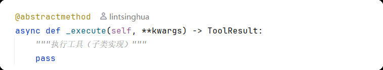 基于AgentTool工具基类实现自定义工具必须实现以下方法: