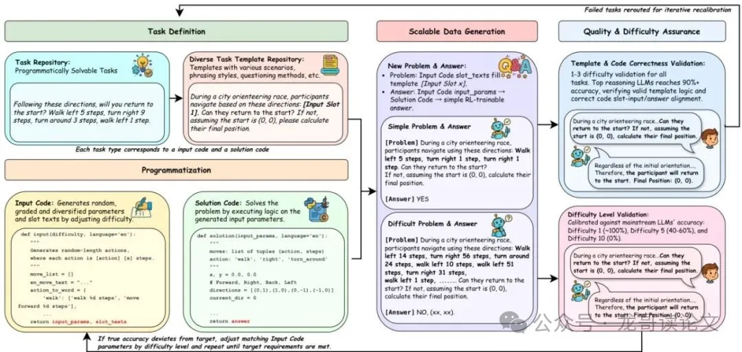 腾讯Hunyuan团队近日发布论文,提出ULTRALOGIC框架,旨在解决大模型通用推理训练的高质量数据稀缺难题。其核心是"代码化解题"思想,将问题逻辑与语言表述分离,通过程序化方法自动生成海量、多样化且难度精确可控的推理训练数据。更关键的是,团队提出了 "双极浮点奖励"机制:完全正确得+1分,不完美答案则根据错误程度获得负分(如接近正确得-0.1分,完全错误得-0.9分),以此强制模型追求完美逻辑链,避免满足于次优解。
