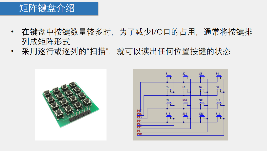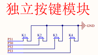 独立按键电路构成是由各个按键的一个管脚连接在一起接地,按键其它引脚分别接到单片机IO口。