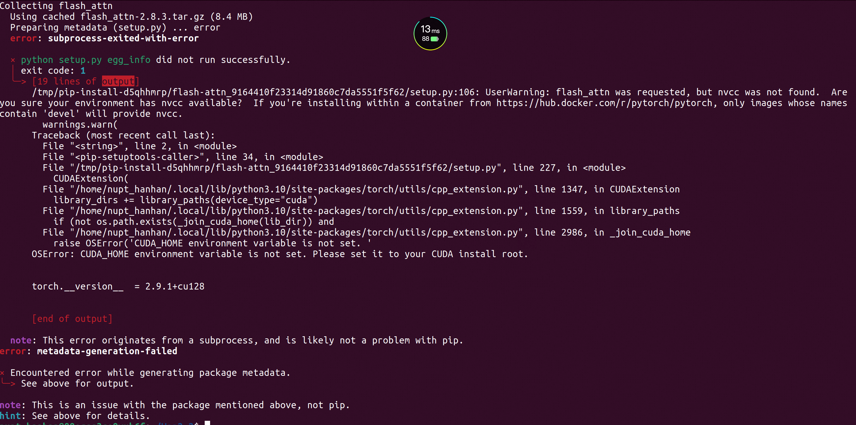 If the installation of flash_attn fails, try installing the other packages first and install flash_attn last
