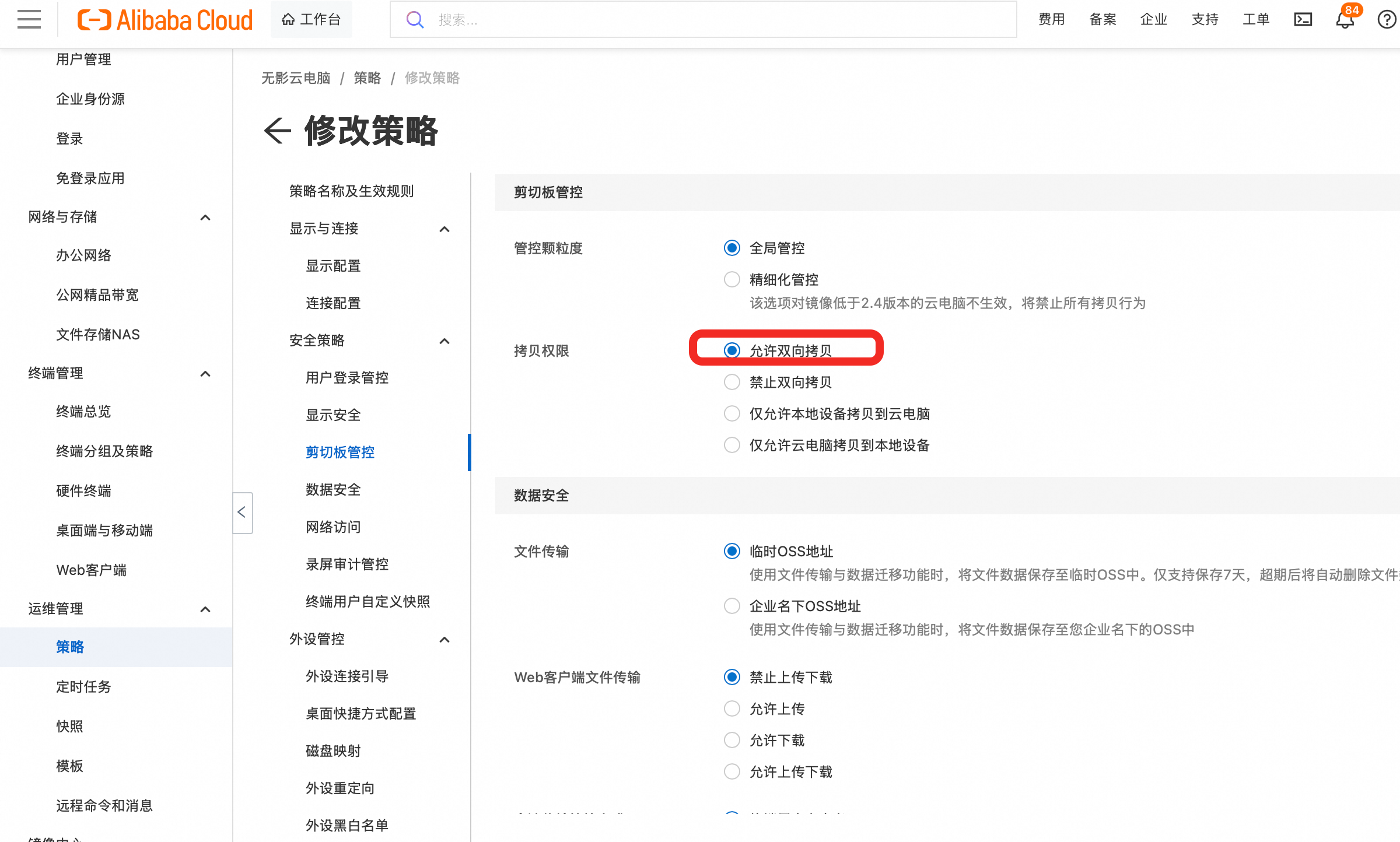 修改策略以支持复制内容到ubuntu执行,需要替换这个instance的策略为新的: