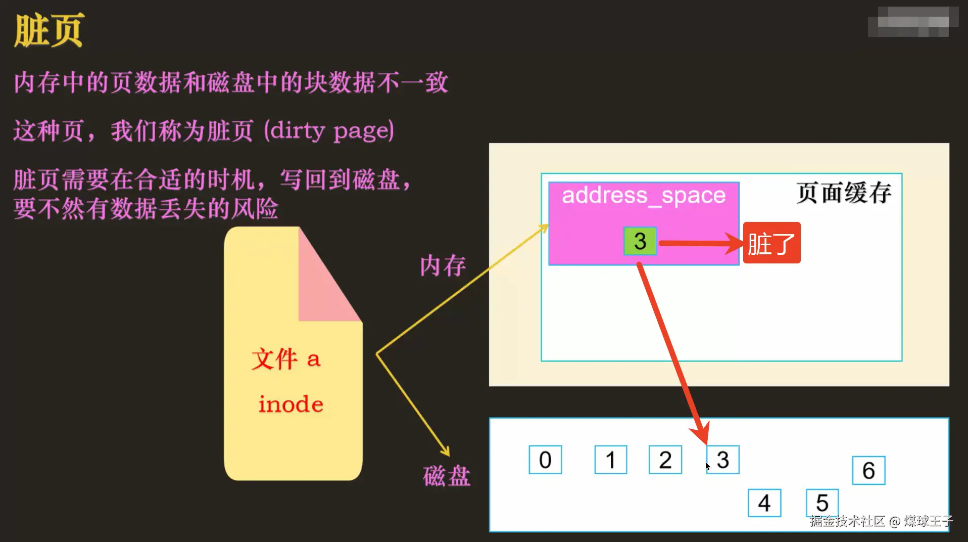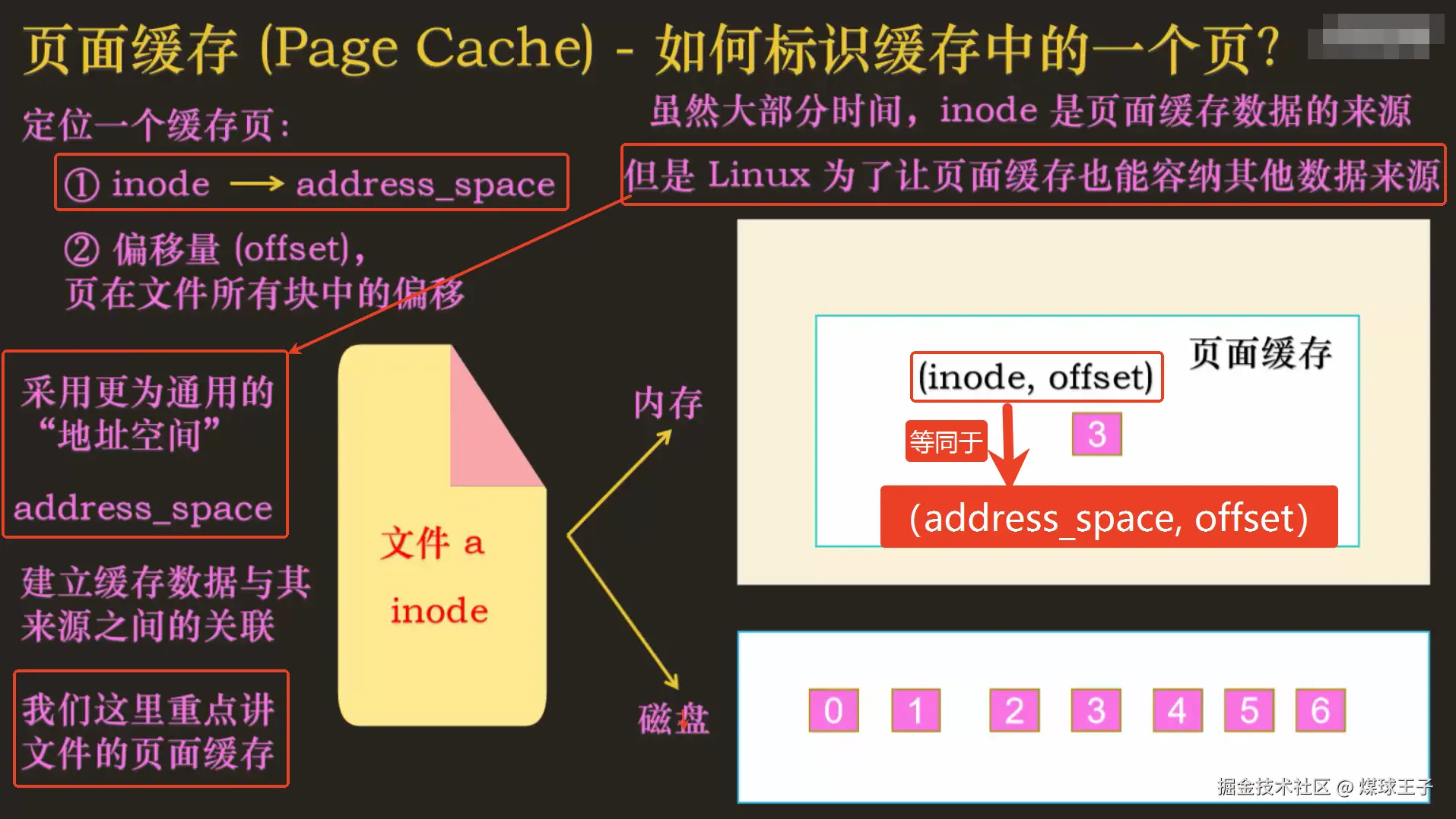 上图举例:文件a的_第四个数据块在页面缓存中的位置, 文件a的: inode + 数据块偏移量