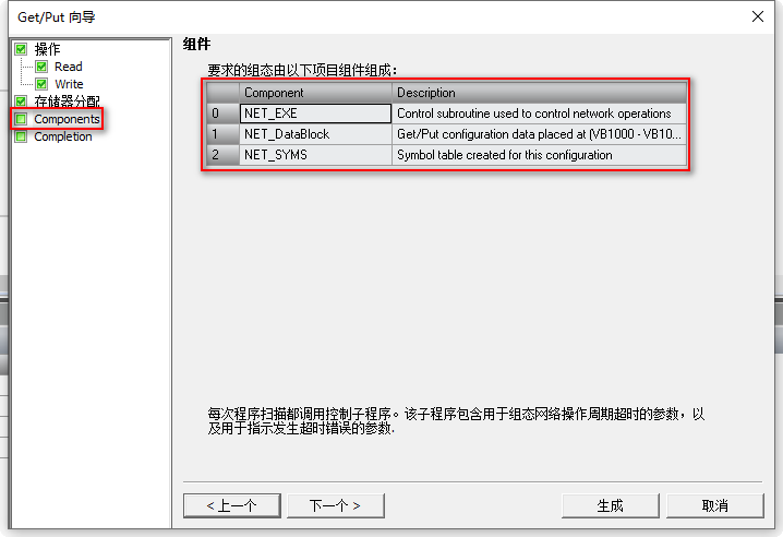 在这里可以看到组态后自动生成的组件,点击"生成",完成GET/PUT向导配置,如图 12 所示。