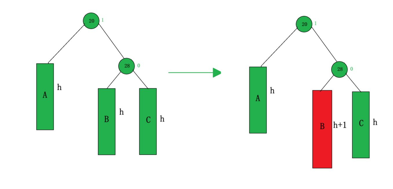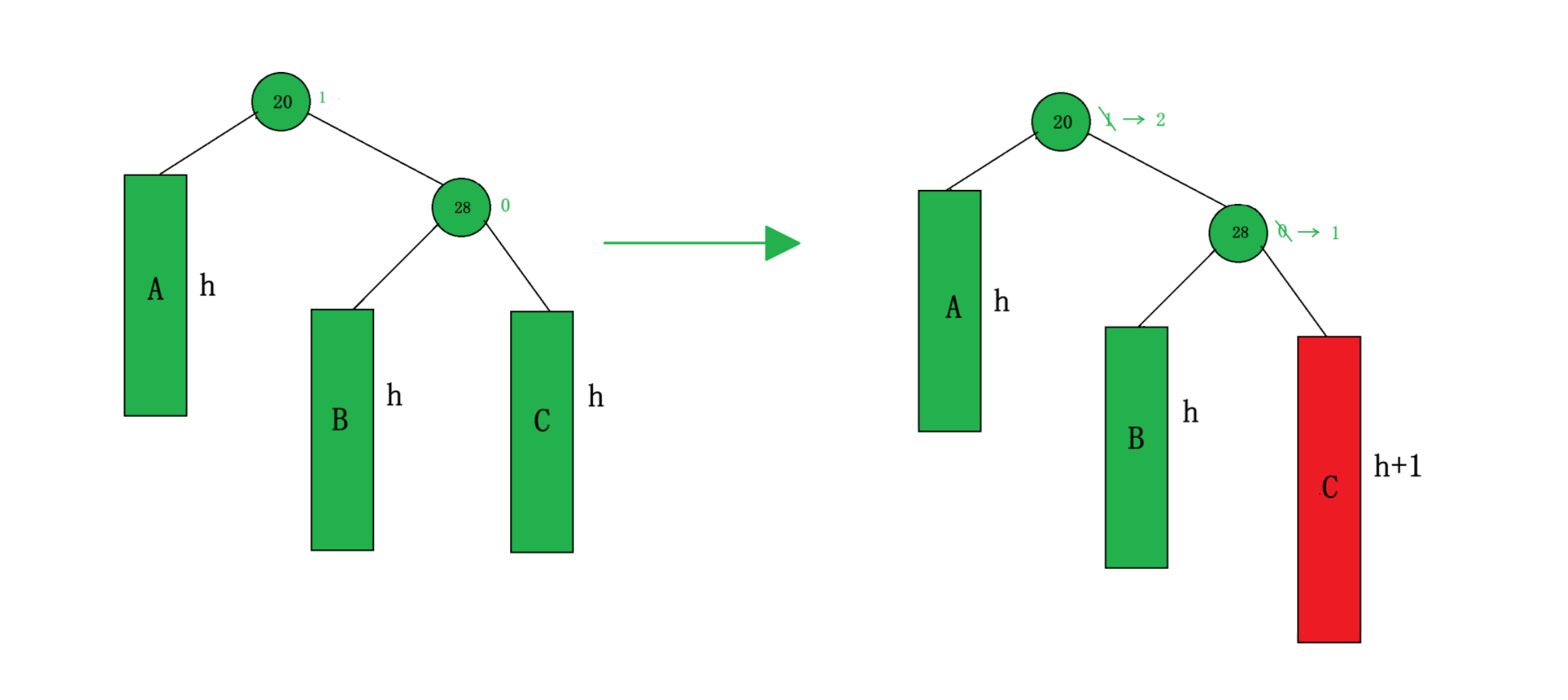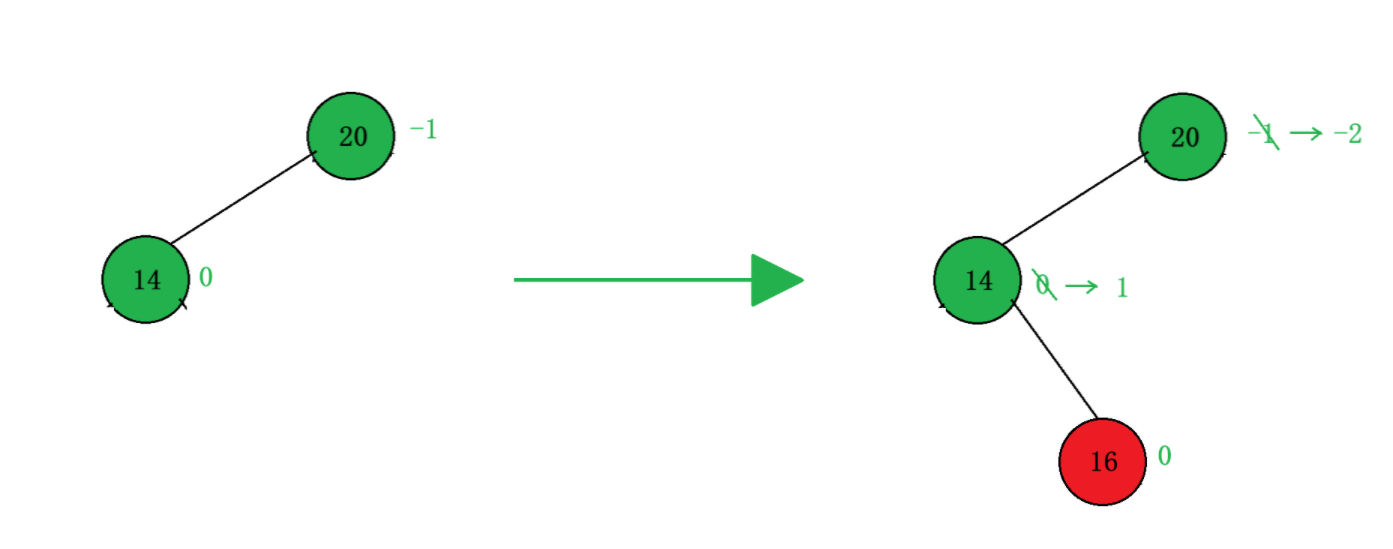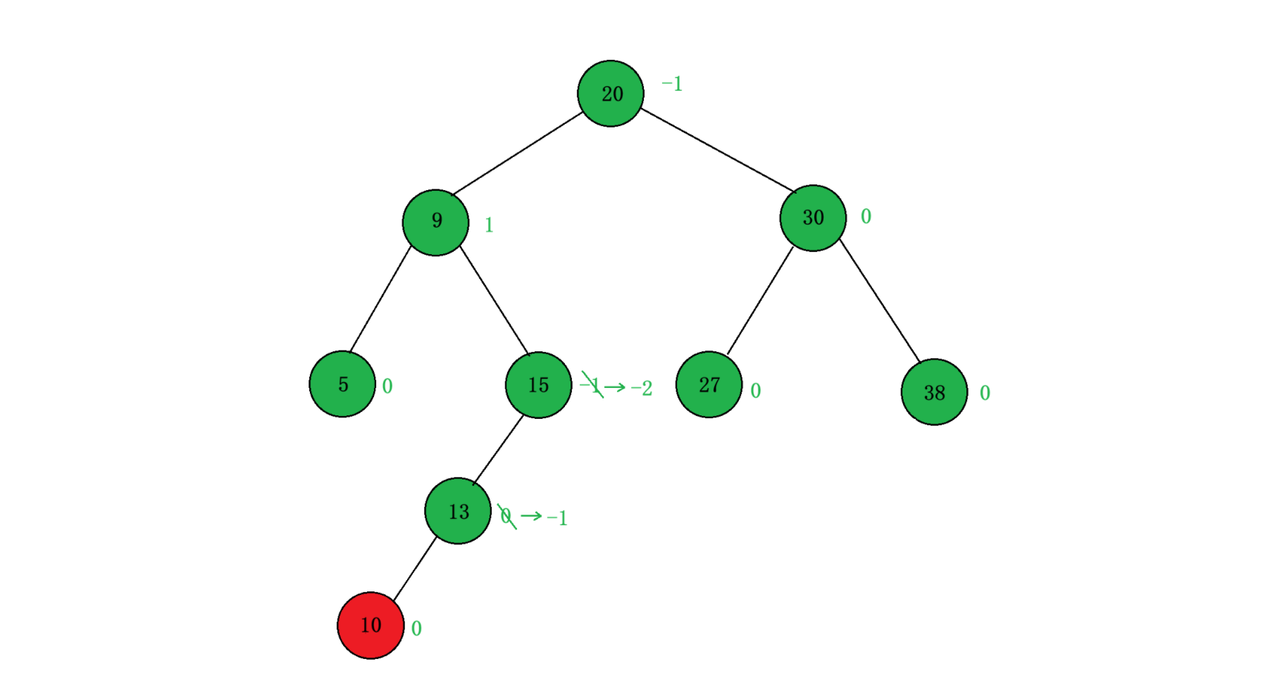 b. 插入在左子树,parent 的平衡因子 ++;插入在右子树,parent 的平衡因子 --