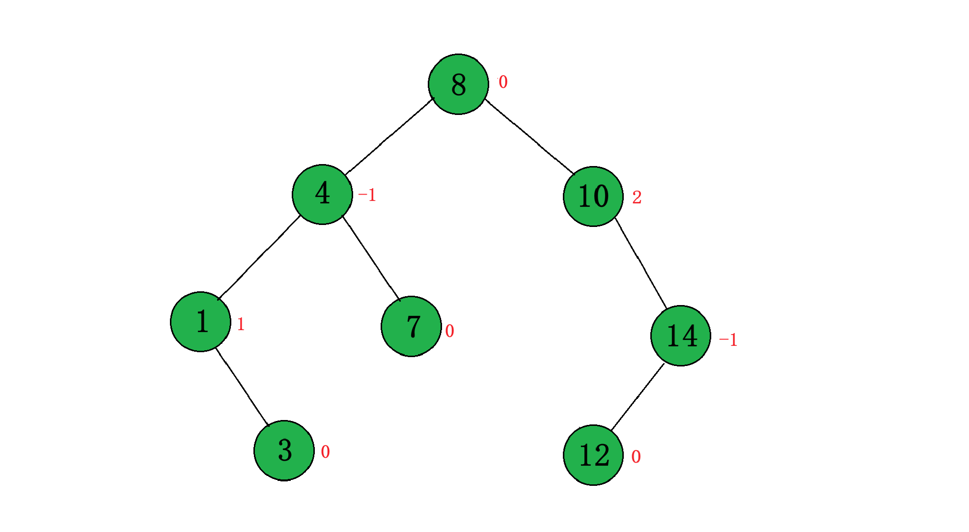 a. 平衡因子 = 右子树高度 - 左子树高度