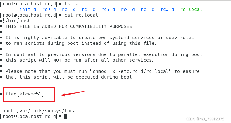 同时我们还得知在/var/lock/subsys/local下创建了一个文件,查看内容: