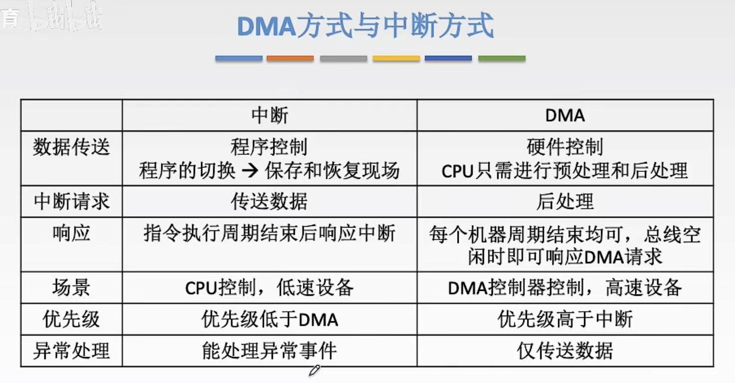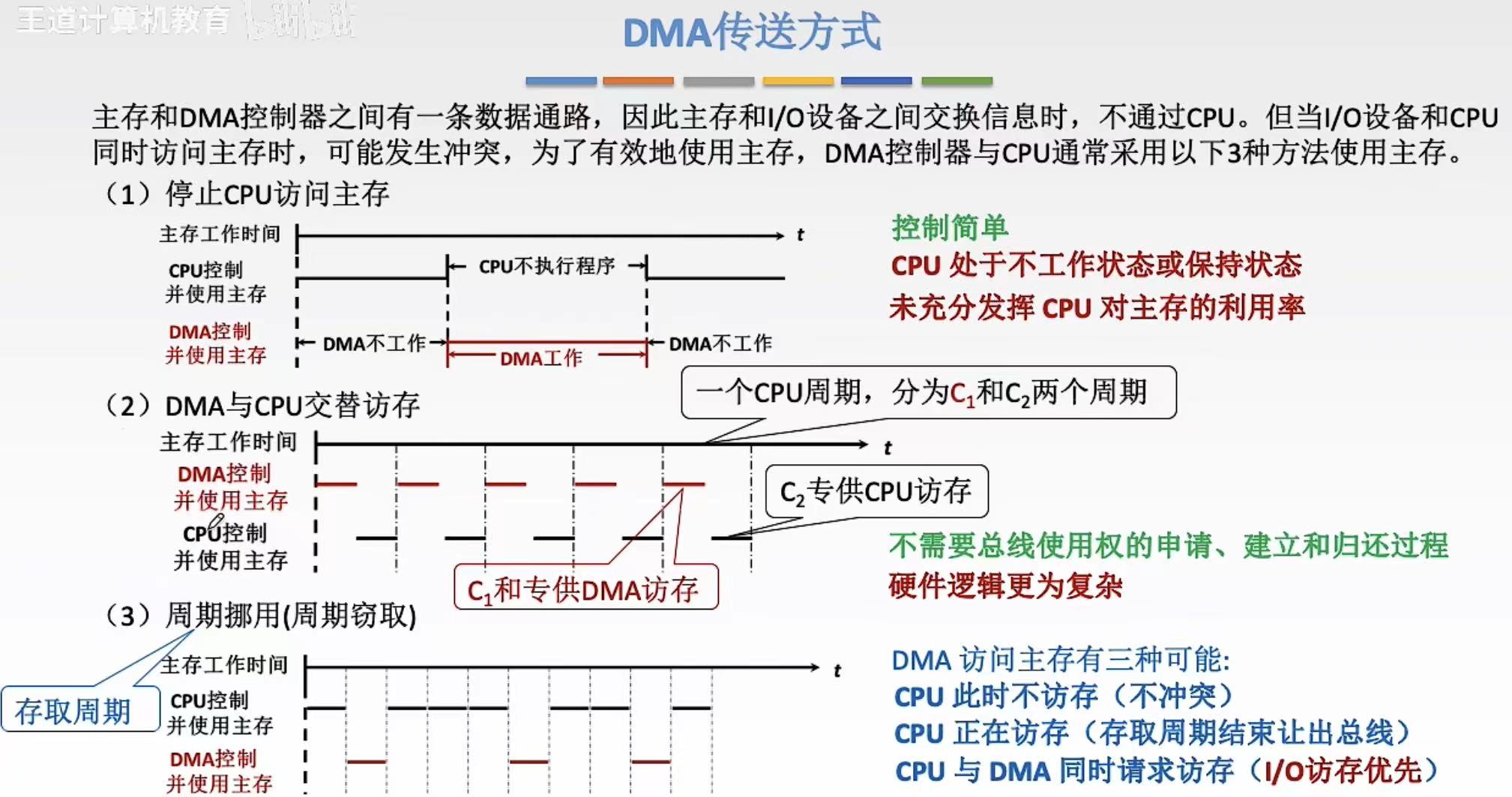 - DMA 与 CPU 交替访存 → "轮流使用,一人一秒"