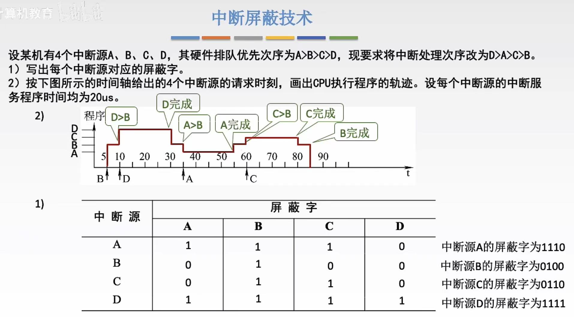 | 中断源 | 屏蔽字(A B C D) | 解释 |