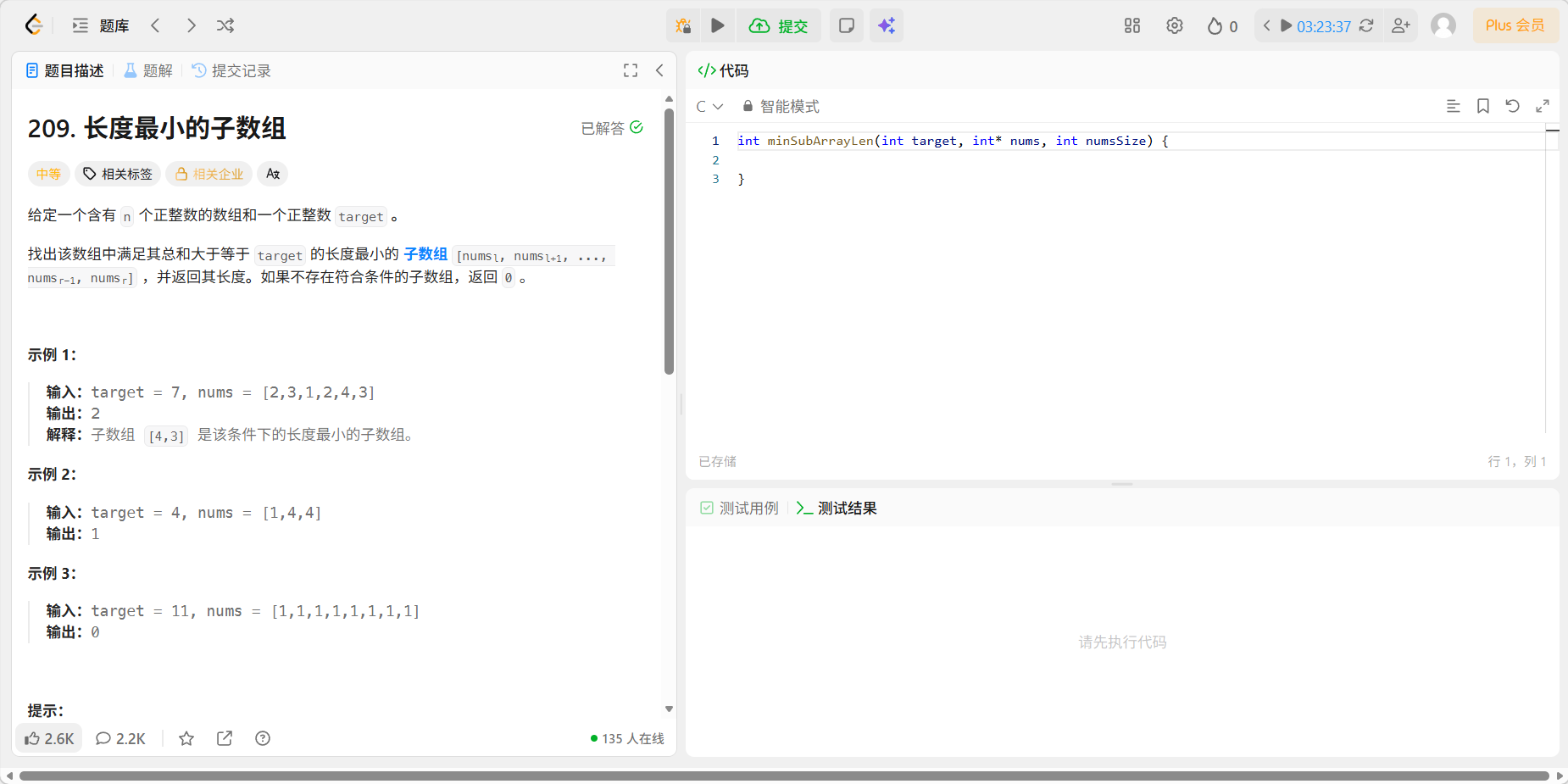 - [1、209 长度最小的子数组](#1、209 长度最小的子数组)