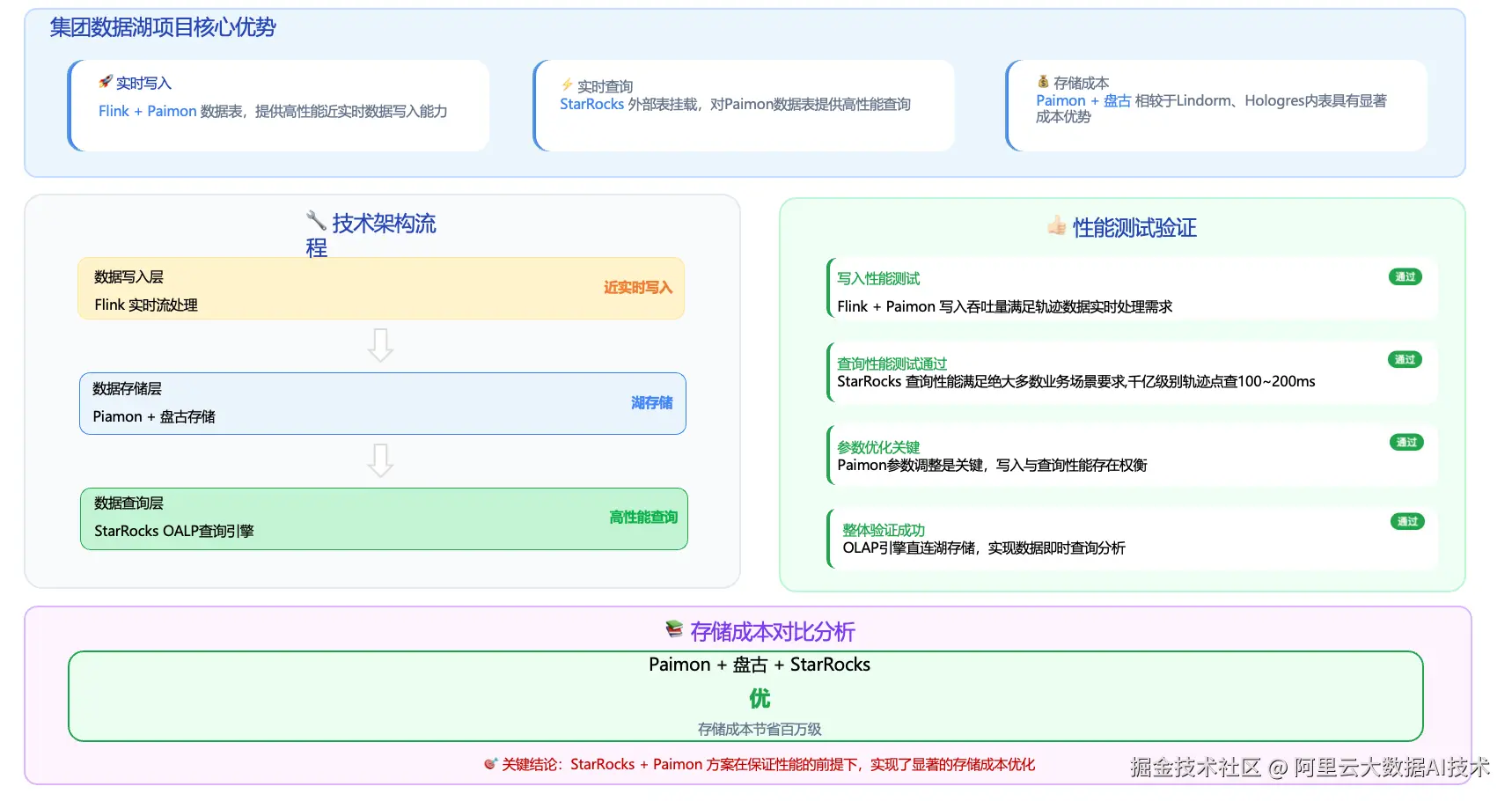 总体而言,StarRocks + Paimon 方案在满足性能指标的前提下,实现了明确的成本优化效果。