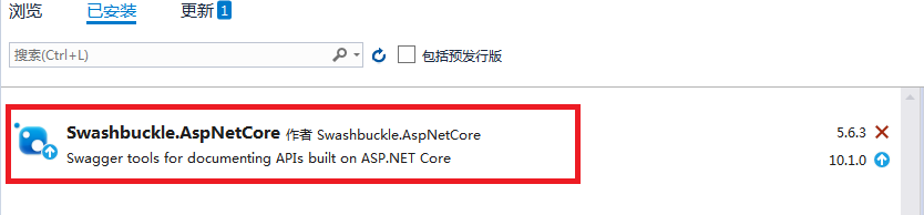 一般情况在创建WebApiCore项目时选择OpenApi支持选项,选择该选项后创建项目时自动安装该Nuget。
