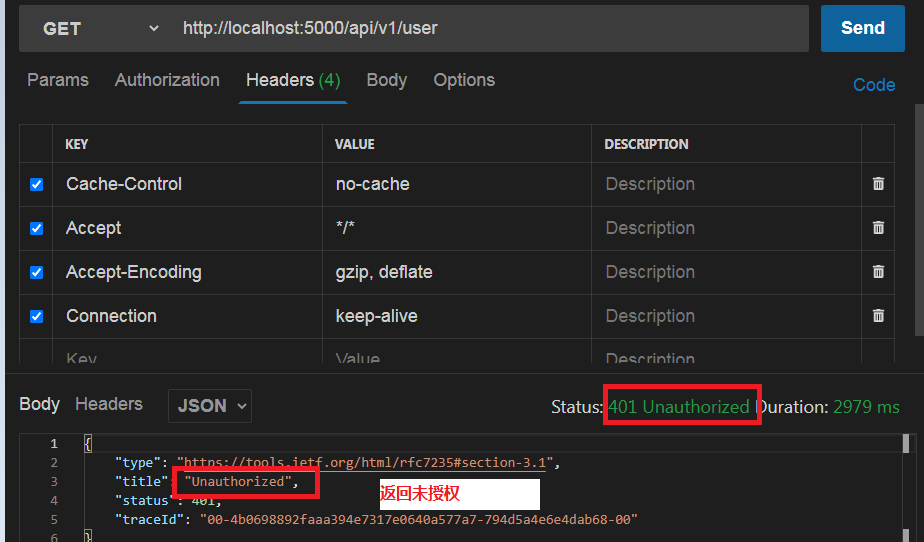 未添加Authorization Bearer时:
