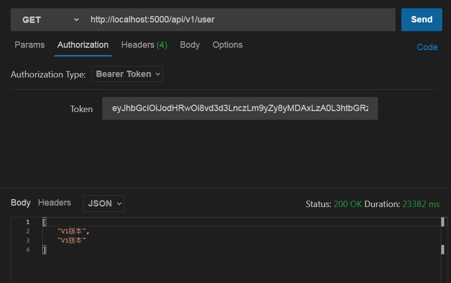 添加 Bearer Token后返回所需值