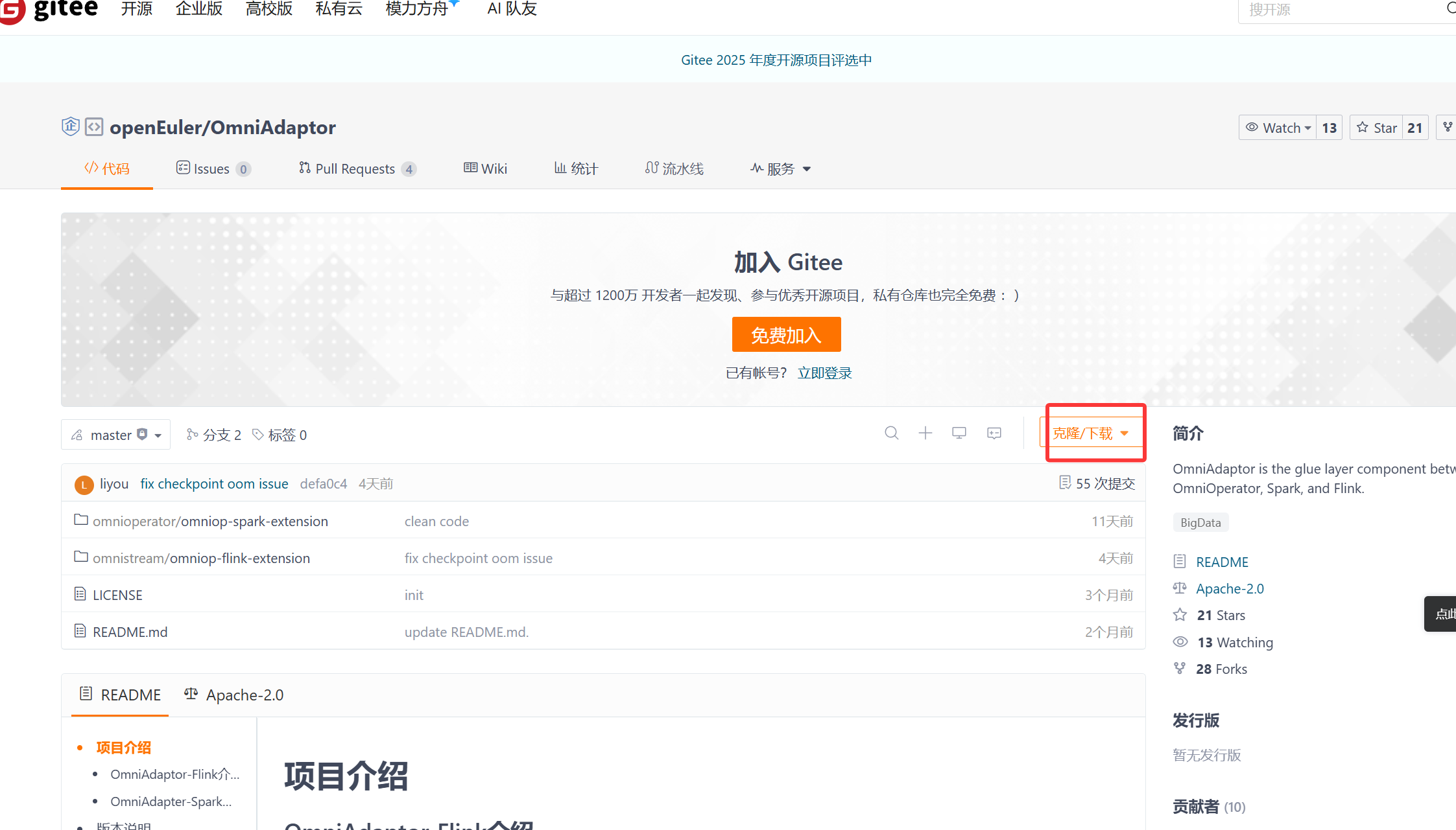 今天这篇文章就带大家一起来分析一下BoostKit里面的OmniAdaptor 项目吧,下载源码的话直接使用Git就能快速下载到: