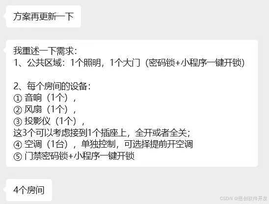 3、给自助舞蹈室的意向客户,梳理一份自助舞蹈室软硬件方案,4个房间+一个大门