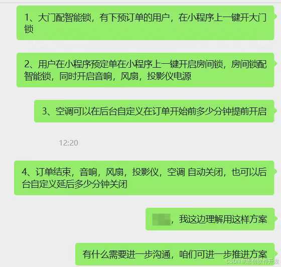 1、在小程序管理端、保洁端添加关闭智能锁功能,这场景是自助KTV场景,线下要求比较严格,用户在小程序下单后,在订单服务期间,智能锁是需要常开的,所以智能锁默认是设置常开状态 ,订单结束之后,需要门店管理人员与保洁员手动在后台,操作一下关门,这样门才能锁上,等一个用户,预订单,在小程序一键开门,门又恢复到常开状态。