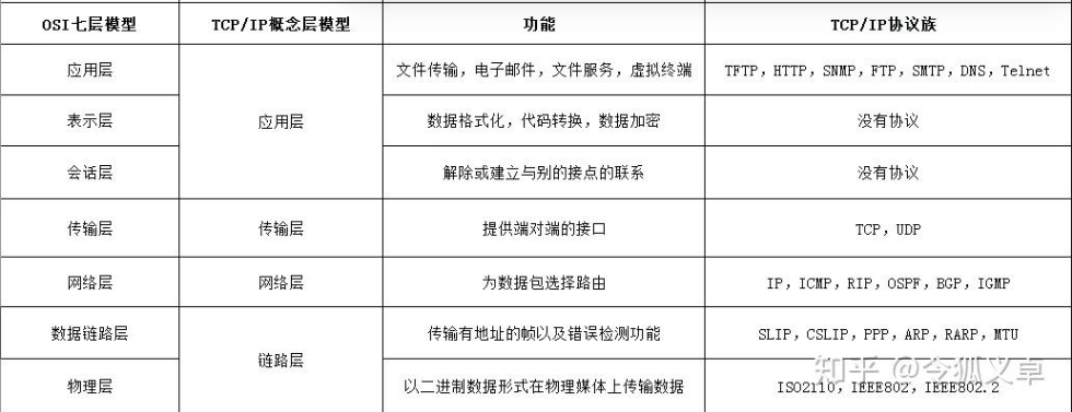 **物理层:**将数据最终编码为用0、1标识的比特流,然后传输。(例如将题主头像的图片,变为一串01100111100这样的数字来表示)。