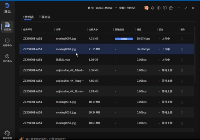 此时绝对不能关机或断网。这就像往网盘上传大文件一样,一旦中途关机或断网,文件传输会直接中断,导致渲染任务提交失败。如果是大型场景文件(比如几十GB的影视项目、高精度建筑模型),上传过程可能需要一定时间,中途的网络波动或设备关闭,不仅会浪费已消耗的时间,还可能导致文件传输不完整,后续即使重新上传,也可能因文件损坏出现渲染报错。